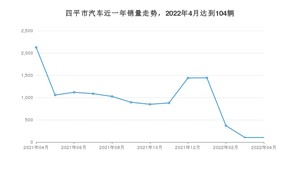 2022年4月,四平市汽车总销量为104辆,同比下降95.11%,环比持平。2021年04月-2022年04月份,四平市总销量为12496辆,同比下降18.89%。在最近1年中,四平市销量在2021年04月达到最高,销量为2126辆。