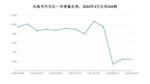 2022年4月,乌海市汽车总销量为249辆,同比下降73.79%,环比持平。2021年04月-2022年04月份,乌海市总销量为9872辆,同比下降12.07%。在最近1年中,乌海市销量在2021年12月达到最高,销量为1068辆。
