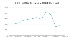 2022年4月,天籁销量为9416辆,同比下降8.38%,环比持平。2021年04月-2022年04月份,天籁销量为171796辆,同比增长16.49%。