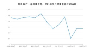 2022年4月,奥迪A8销量为832辆,同比下降39.58%,环比持平。2021年04月-2022年04月份,奥迪A8销量为14881辆,同比下降20.51%。