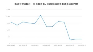 2022年4月,凯迪拉克CT6销量为332辆,同比下降78.85%,环比持平。2021年04月-2022年04月份,凯迪拉克CT6销量为16219辆,同比下降35.4%。