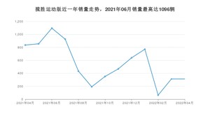 2022年4月,揽胜运动版销量为313辆,同比下降62.56%,环比持平。2021年04月-2022年04月份,揽胜运动版销量为7257辆,同比下降45.37%。