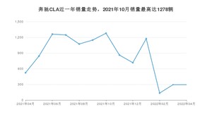 2022年4月,奔驰CLA销量为294辆,同比下降43.79%,环比持平。2021年04月-2022年04月份,奔驰CLA销量为10839辆,同比增长29.02%。