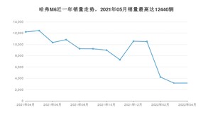 2022年4月,哈弗M6销量为3156辆,同比下降74.17%,环比持平。2021年04月-2022年04月份,哈弗M6销量为112182辆,同比下降39.82%。