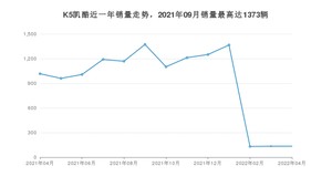 2022年4月,K5凯酷销量为134辆,同比下降86.81%,环比持平。2021年04月-2022年04月份,K5凯酷销量为12043辆,同比下降31.96%。