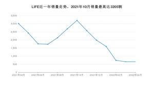 2022年4月,LIFE销量为654辆,同比下降78.27%,环比持平。2021年04月-2022年04月份,LIFE销量为25155辆,同比增长142.69%。