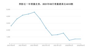 2022年4月,探影销量为695辆,同比下降73.35%,环比持平。2021年04月-2022年04月份,探影销量为31252辆,同比下降12.48%。