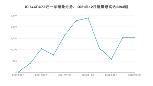 2022年4月,ID.6 CROZZ销量为1538辆,环比持平。2021年04月-2022年04月份,ID.6 CROZZ销量为13238辆,
