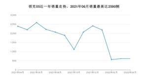 2022年4月,领克05销量为610辆,同比下降74.44%,环比持平。2021年04月-2022年04月份,领克05销量为22909辆,同比下降37.62%。