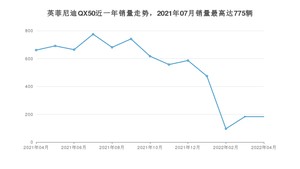 2022年4月,英菲尼迪QX50销量为183辆,同比下降72.31%,环比持平。2021年04月-2022年04月份,英菲尼迪QX50销量为6909辆,同比下降60.04%。