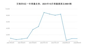 2022年4月,艾瑞泽5销量为809辆,同比下降10.8%,环比持平。2021年04月-2022年04月份,艾瑞泽5销量为46835辆,同比增长657.36%。
