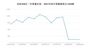 2022年4月,标致408销量为156辆,同比下降81.52%,环比持平。2021年04月-2022年04月份,标致408销量为11061辆,同比下降7.85%。