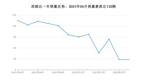 2022年4月,添越销量为28辆,同比下降79.26%,环比持平。2021年04月-2022年04月份,添越销量为1108辆,同比下降40.53%。