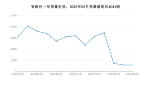 2022年4月,智跑销量为577辆,同比下降81.57%,环比持平。2021年04月-2022年04月份,智跑销量为33955辆,同比下降52.37%。