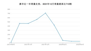 2022年4月,嘉华销量为39辆,环比持平。2021年04月-2022年04月份,嘉华销量为2765辆,