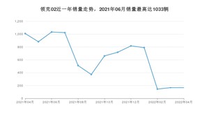 2022年4月,领克02销量为167辆,同比下降83.45%,环比持平。2021年04月-2022年04月份,领克02销量为8295辆,同比下降64.05%。