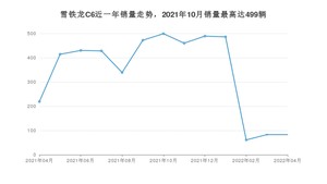 2022年4月,雪铁龙品牌总体销量达到804辆,其中雪铁龙C6销量达到83辆,占品牌总销量的10.32%。