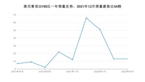 2022年4月,捷尼赛思品牌总体销量达到60辆,其中捷尼赛思GV80销量达到13辆,占品牌总销量的21.67%。