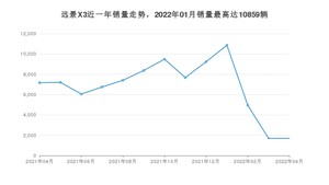 2022年4月,远景X3销量为1697辆,同比下降76.32%,环比持平。2021年04月-2022年04月份,远景X3销量为88552辆,同比下降16.07%。