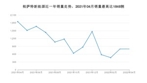 2022年4月,帕萨特新能源销量为800辆,同比下降56.71%,环比持平。2021年04月-2022年04月份,帕萨特新能源销量为14330辆,同比增长40.23%。
