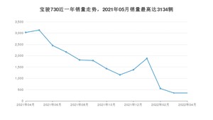 2022年4月,宝骏730销量为350辆,同比下降88.45%,环比持平。2021年04月-2022年04月份,宝骏730销量为21472辆,同比下降60.45%。