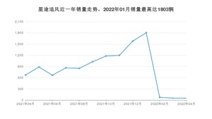 2022年4月,星途追风销量为51辆,同比下降92.4%,环比持平。2021年04月-2022年04月份,星途追风销量为10895辆,同比增长13.58%。