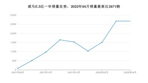 2022年4月,威马E.5销量为2671辆,环比持平。2021年04月-2022年04月份,威马E.5销量为12603辆,