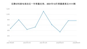2022年4月,迈腾GTE插电混动销量为763辆,环比持平。2021年04月-2022年04月份,迈腾GTE插电混动销量为5828辆,