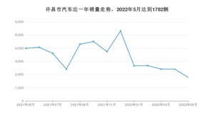 2022年5月,许昌市汽车总销量为1782辆,同比下降55.38%,环比下降26.15%。2021年05月-2022年05月份,许昌市总销量为43865辆,同比下降26.86%。在最近1年中,许昌市销量在2021年12月达到最高,销量为5304辆。