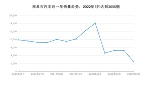 2022年5月,南昌市汽车总销量为3656辆,同比下降69.15%,环比下降53.43%。2021年05月-2022年05月份,南昌市总销量为140208辆,同比下降13.06%。在最近1年中,南昌市销量在2022年01月达到最高,销量为18104辆。