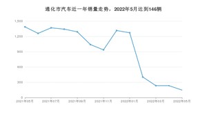 2022年5月,通化市汽车总销量为146辆,同比下降89.47%,环比下降37.34%。2021年05月-2022年05月份,通化市总销量为12221辆,同比下降16.28%。在最近1年中,通化市销量在2021年05月达到最高,销量为1387辆。