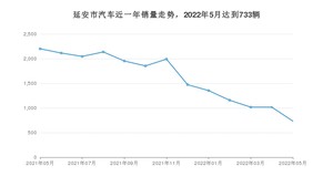 2022年5月,延安市汽车总销量为733辆,同比下降66.68%,环比下降27.85%。2021年05月-2022年05月份,延安市总销量为21036辆,同比下降30.12%。在最近1年中,延安市销量在2021年05月达到最高,销量为2200辆。