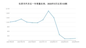 2022年5月,松原市汽车总销量为133辆,同比下降89.09%,环比增长23.15%。2021年05月-2022年05月份,松原市总销量为13017辆,同比下降10.47%。在最近1年中,松原市销量在2021年12月达到最高,销量为1949辆。
