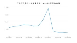 2022年5月,广元市汽车总销量为490辆,同比下降59.93%,环比下降10.09%。2021年05月-2022年05月份,广元市总销量为18777辆,同比下降13.06%。在最近1年中,广元市销量在2022年01月达到最高,销量为3943辆。