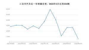 2022年5月,三亚市汽车总销量为554辆,同比下降80.48%,环比下降79.02%。2021年05月-2022年05月份,三亚市总销量为37438辆,同比增长12.53%。在最近1年中,三亚市销量在2021年12月达到最高,销量为5932辆。