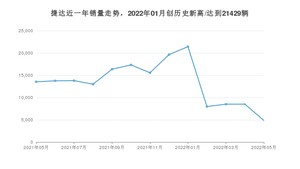 在SUV方面,5月捷达的销量为2357辆,同比下降72.75%,环比下降48.73%。2021年05月-2022年05月份累计销量为120056辆,较去年同期下降0.85%。