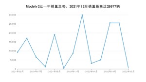 2022年5月,Model 3销量为417辆,同比下降95.53%,环比下降98.37%。2021年05月-2022年05月份,Model 3销量为152028辆,同比下降18.62%。