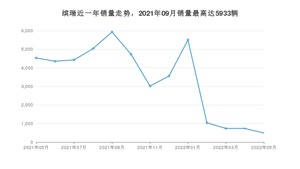 2022年5月,缤瑞销量为487辆,同比下降89.26%,环比下降33.92%。2021年05月-2022年05月份,缤瑞销量为44112辆,同比下降43.65%。