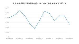 2022年5月,雷克萨斯ES销量为5265辆,同比下降34.86%,环比下降39.47%。2021年05月-2022年05月份,雷克萨斯ES销量为102646辆,同比下降25.44%。