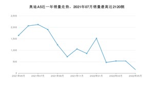 2022年5月,奥迪A5销量为153辆,同比下降90.7%,环比下降71.19%。2021年05月-2022年05月份,奥迪A5销量为14799辆,同比增长0.31%。