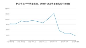 2022年5月,伊兰特销量为2529辆,同比下降72.99%,环比下降37.74%。2021年05月-2022年05月份,伊兰特销量为116048辆,同比增长54.63%。