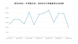 2022年5月,蔚来ES6销量为1903辆,同比下降29.07%,环比下降61.12%。2021年05月-2022年05月份,蔚来ES6销量为50139辆,同比增长42.29%。