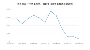 2022年5月,探界者销量为372辆,同比下降86.75%,环比下降42.5%。2021年05月-2022年05月份,探界者销量为29472辆,同比下降33.82%。