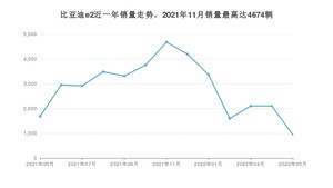 2022年5月,比亚迪e2销量为933辆,同比下降44.63%,环比下降55.68%。2021年05月-2022年05月份,比亚迪e2销量为37071辆,同比增长71.47%。