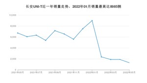 2022年5月,长安UNI-T销量为1291辆,同比下降80.79%,环比下降31.48%。2021年05月-2022年05月份,长安UNI-T销量为67701辆,同比下降33.5%。