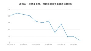 2022年5月,添越销量为11辆,同比下降91.06%,环比下降60.71%。2021年05月-2022年05月份,添越销量为984辆,同比下降46.72%。
