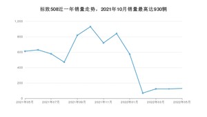 2022年5月,标致508销量为129辆,同比下降78.89%,环比增长4.88%。2021年05月-2022年05月份,标致508销量为6614辆,同比下降6.02%。