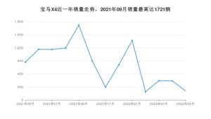 2022年5月,宝马X4销量为209辆,同比下降76.06%,环比下降52.71%。2021年05月-2022年05月份,宝马X4销量为10774辆,同比下降20.27%。