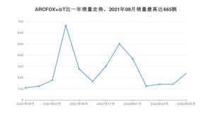 2022年5月,ARCFOX αT销量为240辆,同比增长120.18%,环比增长70.21%。2021年05月-2022年05月份,ARCFOX αT销量为3338辆,同比增长298.81%。