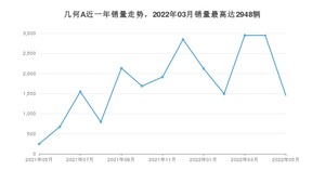 2022年5月,几何A销量为1451辆,同比增长485.08%,环比下降50.78%。2021年05月-2022年05月份,几何A销量为22801辆,同比增长299.04%。